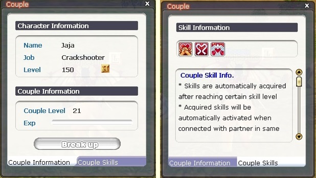 • Level your couple by staying online on the same channel (press J to see your couple skills)