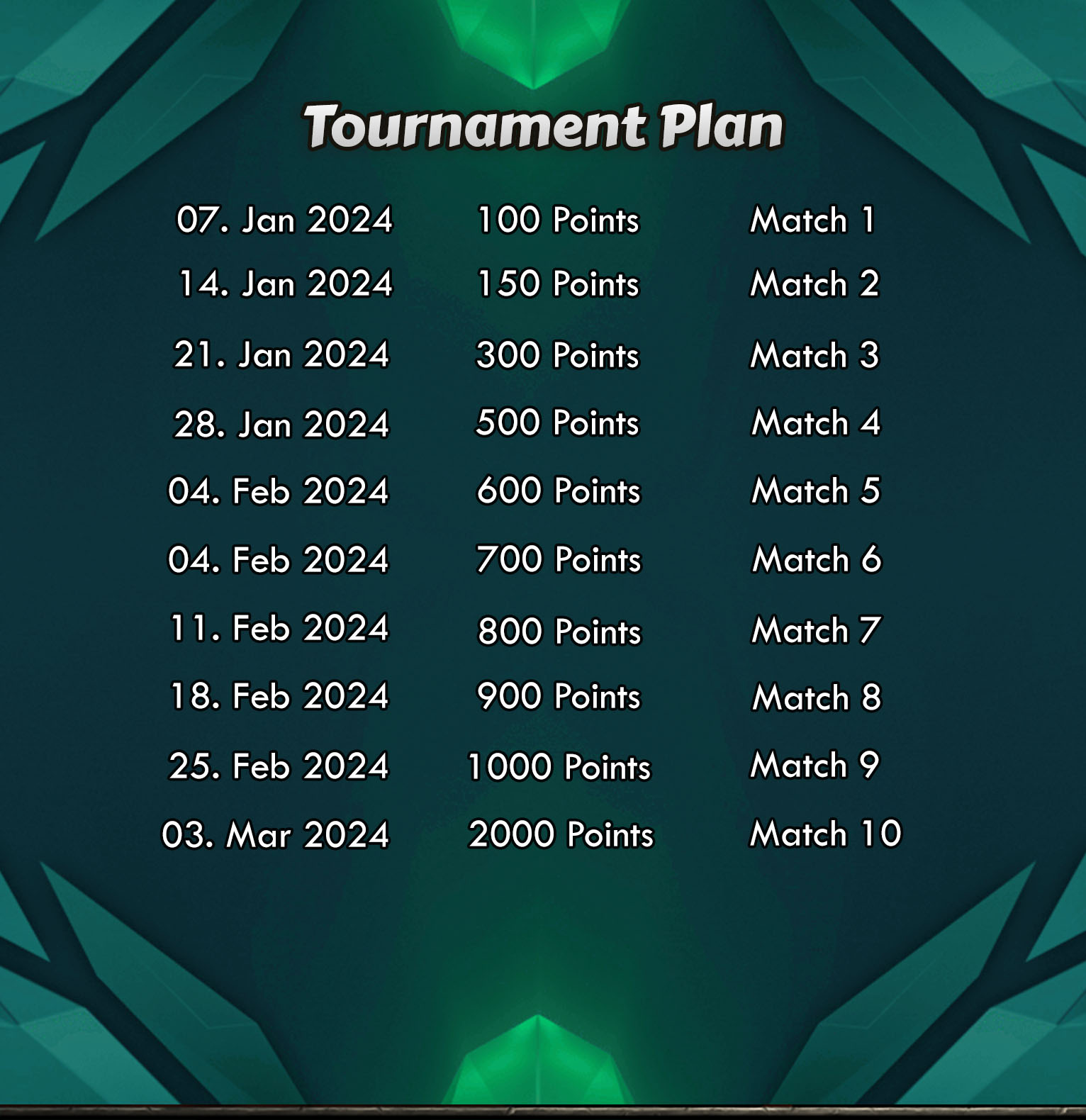 Points for the tournament are awarded on fixed dates. To get points you have to participate in Guild Siege on that day and score points. The tournament always takes place on Sundays at 3 PM GMT+1. Each tournament match will give you a free level up at any level!